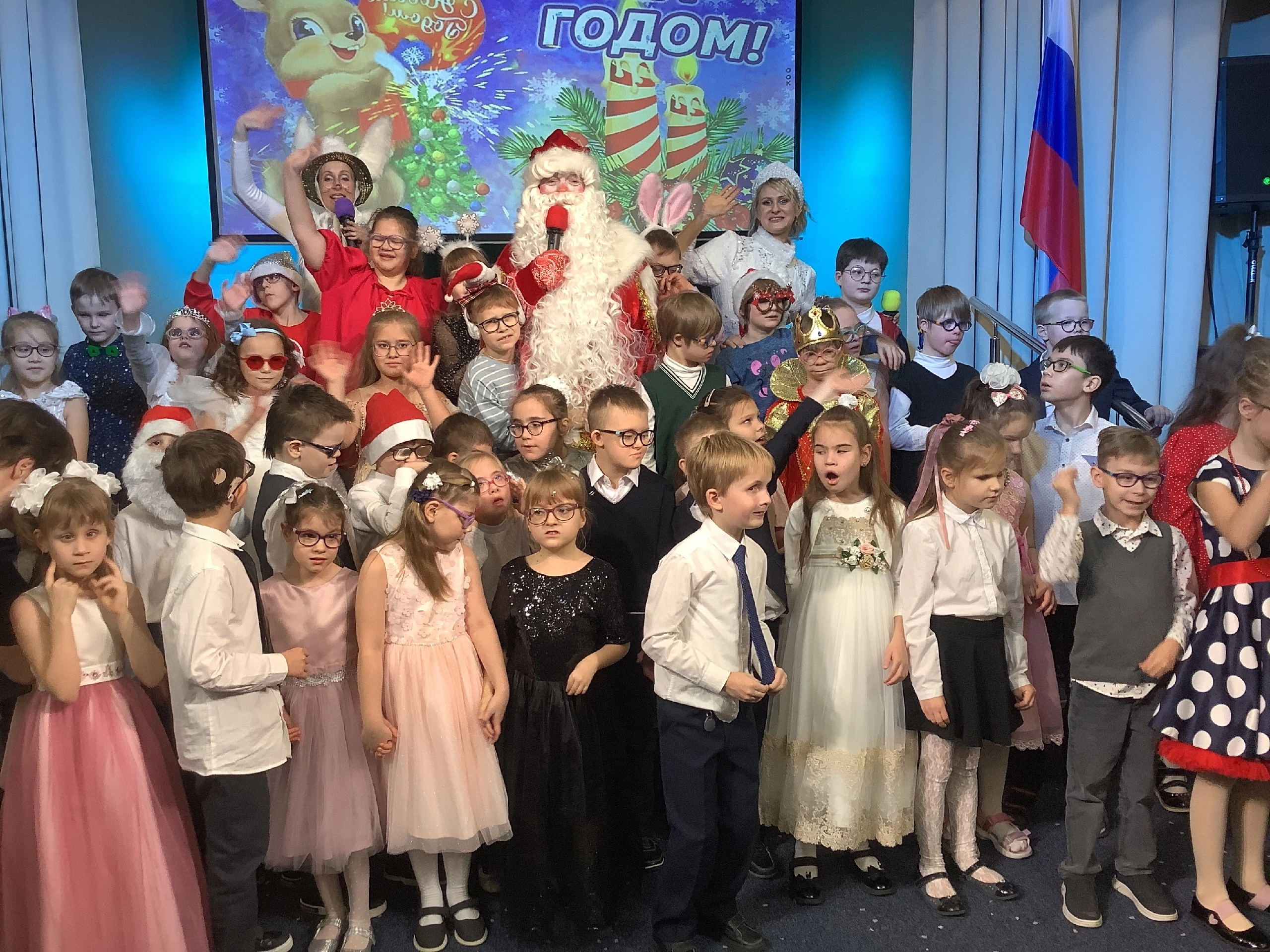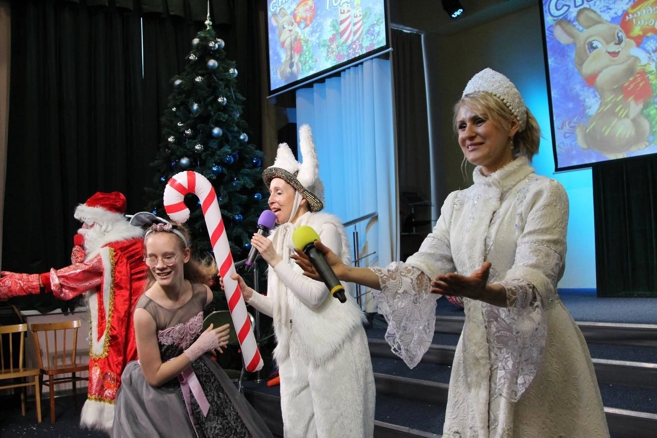 24 декабря мы провели два замечательных новогодних праздника для 150 учеников начальных классов школы-интерната №1 им. К.К.Грота для слепых и слабовидящих.