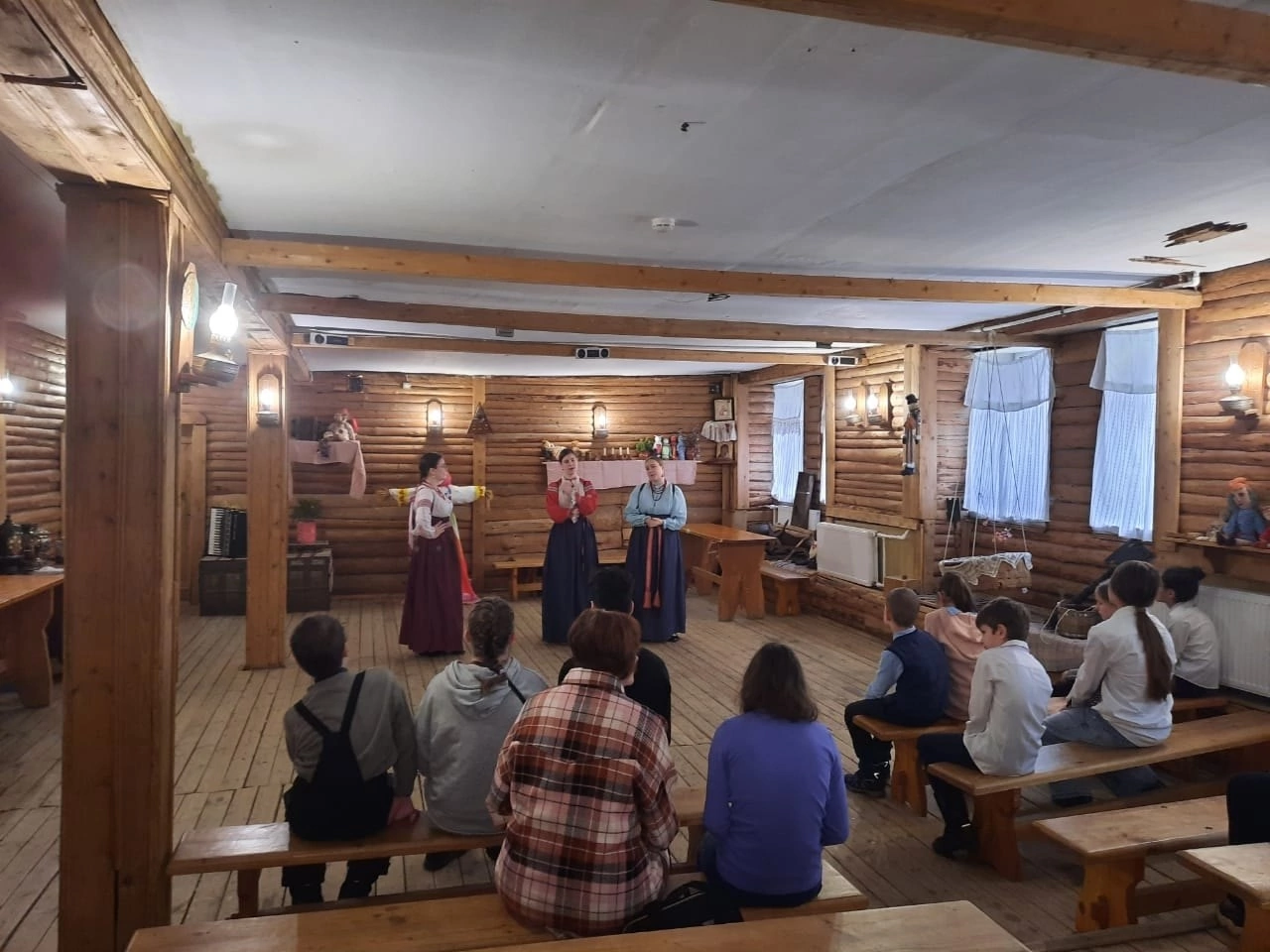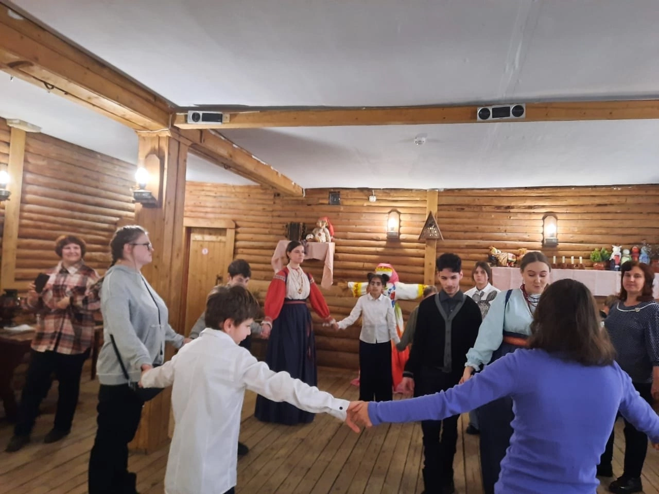 Ребята погрузились в атмосферу русской деревни: познакомились с традиционными предметами быта, стали участниками веселого представления, полного ярких эмоций и смеха, исполнили народные песни, водили хороводы и даже катались с горки!